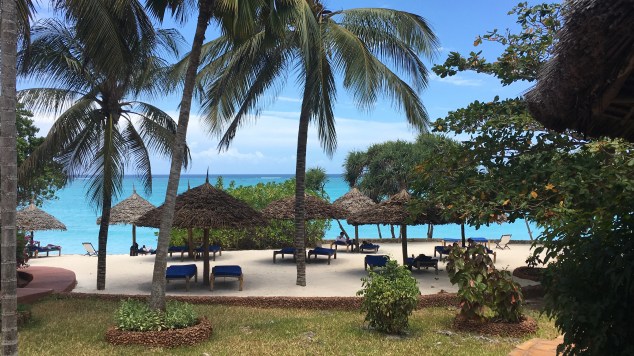 I’m staying at the Ras Nungwi beach hotel. It’s beautiful. Right on the beach, the rooms are small huts with everything you need.